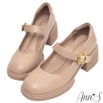 Ann’S小眾變大眾-復古皮革厚底粗跟瑪莉珍樂福鞋6cm-杏
