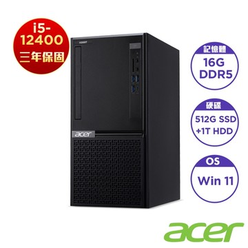 Acer 宏碁 VH3760T 十二代i5六核雙碟桌上型電腦(i5-12400/16GB/512GB+1TB/Win11)
