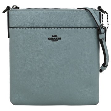 COACH CC526 Kitt 經典C 素面防刮皮革斜背包.水藍