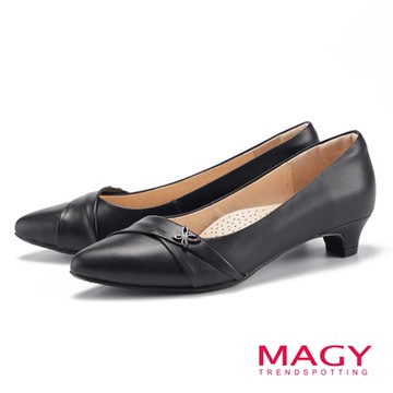 高跟鞋 HELENE_SPARK 簡約優雅鍊條釦羊皮尖頭高跟鞋-黑