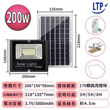 【LTP】200W LED分離式智能光控太陽能感應燈-遙控定時 太陽能分體式壁燈 LED戶外照明燈