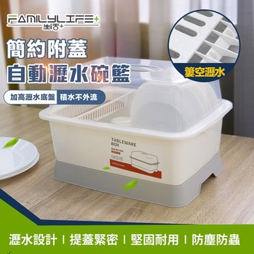 【FL 生活+】簡約附蓋自動瀝水碗籃-小型款(廚房碗櫃/碗筷收納盒/收納箱/防蟲防塵/A-099)