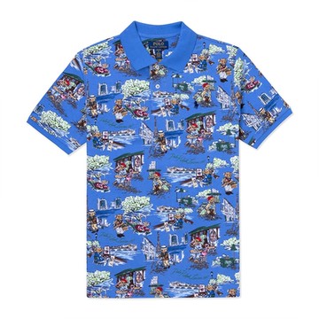 Polo Ralph Lauren RL 熱銷刺繡滿版熊圖案短袖POLO衫(青年款)-藍色