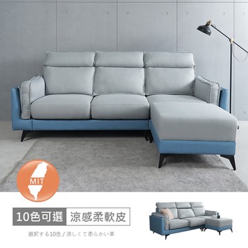 時尚屋 台灣製伊芙L型中鋼彈簧超柔軟耐磨透氣皮沙發FZ11-145 可選色/可訂製/免組裝/免運費/沙發