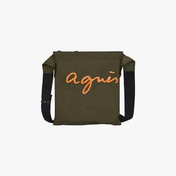 agnes b.Voyage 草寫logo尼龍斜背包(黑色)