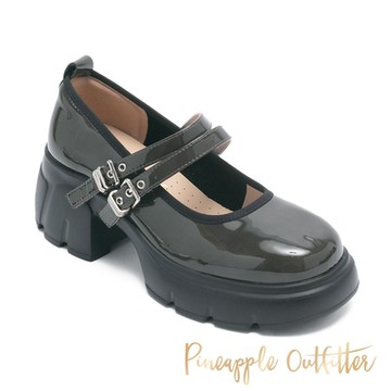 【日本京都聯名】HAPPYFACE 復古雙帶厚底瑪莉珍鞋 霧黑 (5B2958)