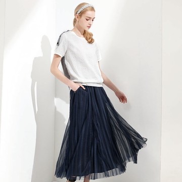 2WAY抽繩設計層次紗裙-附內襯(1K44L0L0300) - earth music&ecology