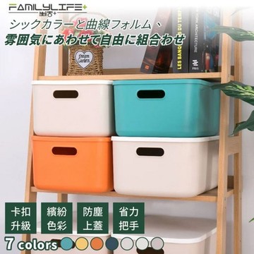 【FL 生活+】撞色系可疊加附蓋中型可提收納盒(七色任選/收納箱/內衣收納/收納籃/整理盒/置物籃/YG-131)