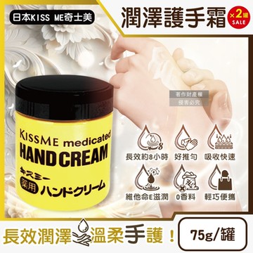 (2罐超值組)日本KISS ME奇士美-深層護理長效約8小時維他命E潤澤護手霜75g/罐(甘油潤手膜,滋潤嫩手霜,手足滋養霜,保養膝蓋手肘腳跟)