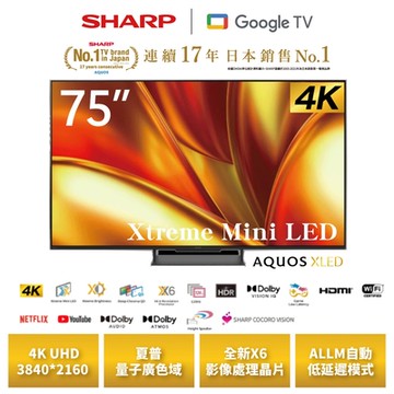 SHARP夏普 4T-C75HJ6000X 75吋 AQUOS 4K UHD Google TV連網顯示器