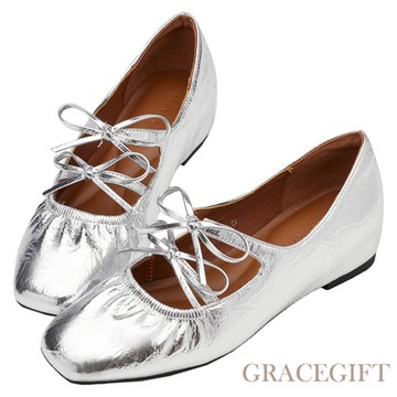 【Grace Gift】Grace GiftxHealer-法式蝴蝶結芭蕾舞平底娃娃鞋 銀