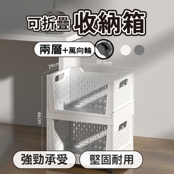 【South Life】可折疊收納箱-雙層萬向輪(堅固耐用 多功能整理箱 儲物箱 可移動 帶輪 摺疊 居家收納 租屋族)