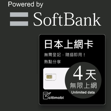 【citimobi 上網卡】日本4天上網吃到飽不限量(2GB/日高速流量)