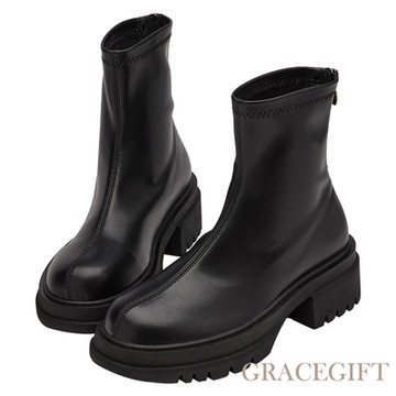 【Grace Gift】夾心鬆糕圓頭彈力靴 黑