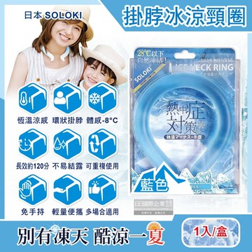 (2盒任選超值組)日本SOLOKI-可重複使用體感降溫約8度保冷掛脖冰涼頸圈1入/盒(大人小孩通用,免手持涼感環,散熱冰敷袋,室內戶外通勤涼感巾)