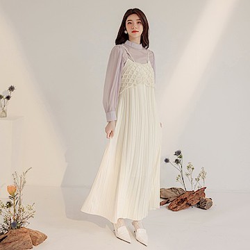 甜美素面層次蛋糕長裙