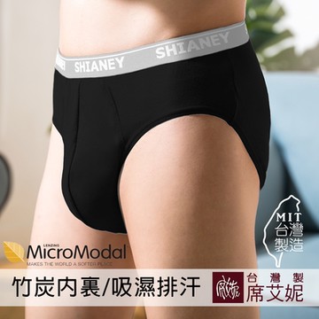 席艾妮SHIANEY 台灣製造 男性 莫代爾纖維 竹炭內裏 三角內褲 (黑)