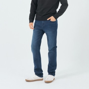 GIORDANO 男裝高彈力錐形牛仔褲 - 03 中藍