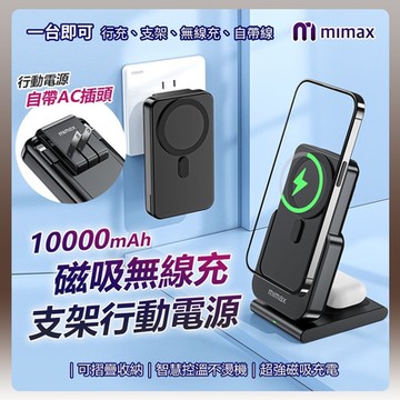 米覓 mimax 磁吸無線充支架行動電源 10000mAh 磁吸 行動電源 自帶AC插頭 自帶快充線