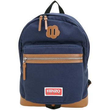 KENZO 電繡老虎圖案LOGO帆布拉鍊迷你三用後背包(深藍)