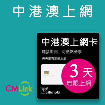 【citimobi 上網卡】eSIM中港澳3天上網吃到飽 (2GB/日高速流量)
