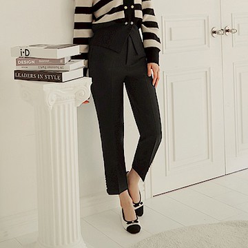OB嚴選-後鬆緊造型腰頭車線西裝褲