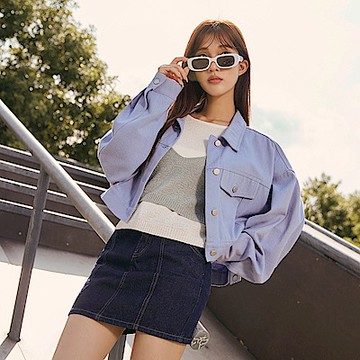 純棉率性斜紋造型雙口袋短版外套