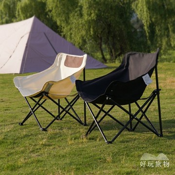 山趣戶外可折疊椅子便攜式月亮椅露營裝備釣魚黑化風久坐舒服休閑
