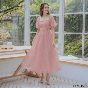 OMUSES 兩穿光澤感粉紫色長禮服