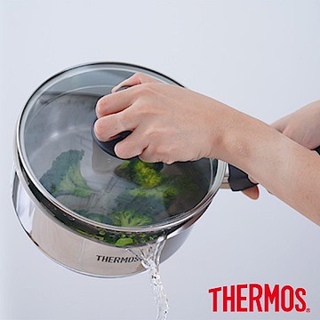 【THERMOS膳魔師】不銹鋼附瀝水蓋雪平鍋_18cm