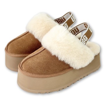 現貨 UGG Funkette 半包式毛毛雪靴厚底涼鞋 栗子棕 女 真皮羊毛一體綁帶拖鞋 防潑水保暖毛絨絨一腳蹬鞋子 1113474