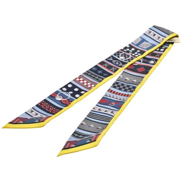 HERMES 愛馬仕 藍色/黃色 絲綢 De l Ombrelle aux Duels twilly 絲巾 【二手名牌BRAND OFF】