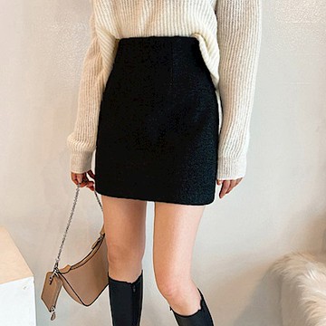 (超好搭)素面側拉鍊後鬆緊毛呢短裙 KT9801912【現+預】