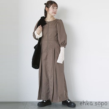 〚Green Parks〛褶皺拼接下擺法式袖洋裝