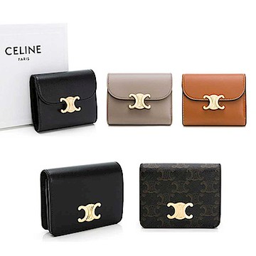 CELINE 賽琳 Triomphe Compact 標誌印花 短款 零錢包 皮夾 卡夾 短夾 黃褐色 10K622CQH.04LU