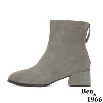 『絕版特賣★3折起』GREEN PINE仿舊感皮帶V剪裁拉鍊高跟短靴 鐵灰色 (00317270)