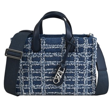 MICHAEL KORS GIGI 毛邊格紋織布手提斜背兩用包(牛仔藍)
