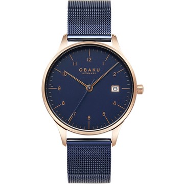 OBAKU 簡約風潮淑女時尚腕錶-玫瑰金X藍-V298LDVLML-39mm