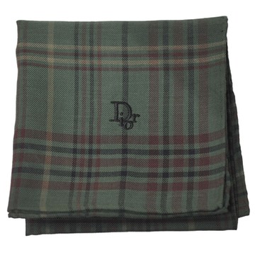 Christian DIOR 迪奧 100%棉經典格紋刺繡圖騰品牌字母LOGO帕領巾(綠格系)