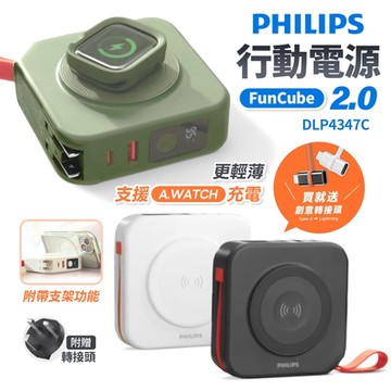 Philips 飛利浦 放心充 FunCube 2.0 多合一無線行動電源 附贈萬國轉接頭 DLP4348C