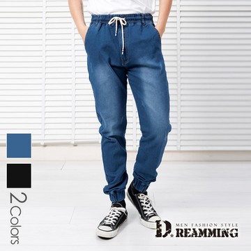 Dreamming 水洗刷白修身抽繩牛仔縮口褲 束口 長褲-共二色