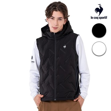 HONOR連帽菱格絎縫保暖科技棉背心-黑