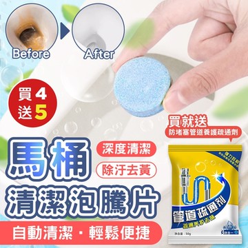 持久防護強力馬桶除臭清潔泡騰片x4盒(加贈防堵塞管道養護疏通劑50gx5)
