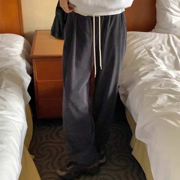內裏加絨保暖垂感高腰直筒休閒闊腿褲