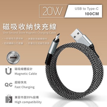 songwin 尚之宇 Type C to Type C磁吸收納充電線 48g 100cm 1個 尼龍編織 黑色 + 白色