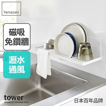 下殺799 日本山崎tower三格日系框型盤架L(白)/廚房收納/碗盤架/碗盤收納/碗盤瀝水架/餐櫥櫃收納