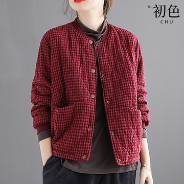 ➤雙面穿格紋立領鋪棉外套(兩色)