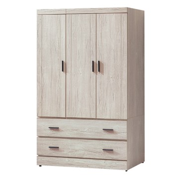 綠活居 德里 現代3.8尺三門二抽衣櫃/收納櫃113.5x57.5x182cm免組