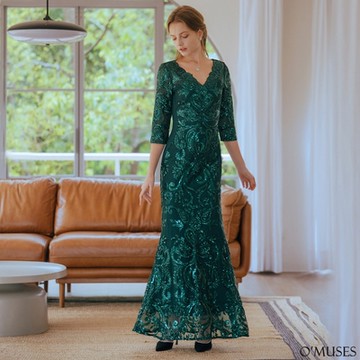 燒花細肩帶收腰蛋糕落地長洋裝輕婚紗-OB嚴選