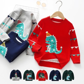 聖誕新年恐龍系列針織毛衣 針織衫 長袖上衣 線衫 聖誕節 大紅 耶誕節 男童 兒童 童裝 橘魔法 現貨【BB7090】